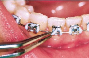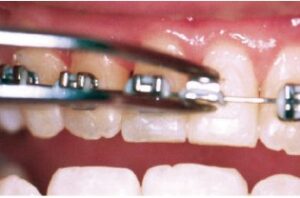 koruyucu takmaları gerekmektedir.) Braketiniz veya bandınız hala tele bağlıysa, yerinde bırakmalı ve rahatlık için gerekirse üzerine mum kapatabilirsiniz. Ebeveyn bilgilendirilmeli ve sonraki uygun adımları belirlemek için ortodontisti aramalıdır. Braket veya bant kolayca çıkarılabiliyorsa, bir zarfa koyun ve bir sonraki randevunuza götürmek üzere saklayın. Gevşek braket telin üzerinde dönmüş ve dışarı çıkmışsa ve hasta hemen ortodontiste götürülemiyorsa, rahatsızlığı hafifletmek ve daha fazla hasarı önlemek için geçici bir düzeltme yapabilir. Ancak yutmayı veya diğer yaralanmaları önlemek için dikkatli olun! Braketi tekrar yerine yerleştirmek için, steril cımbız kullanarak braketi tel boyunca iki diş arasına gelinceye kadar kaydırın. Braketi tekrar uygun konuma döndürün, ardından tekrar dişin ortasına doğru