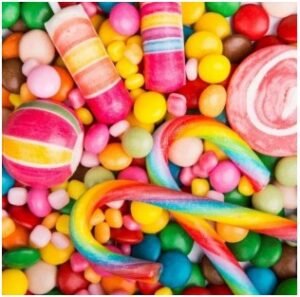 - Yapışkan veya sakızlı şeker veya şeker çubukları (sakızlı ayıcıklar veya karamel içeren şeker çubukları gibi).