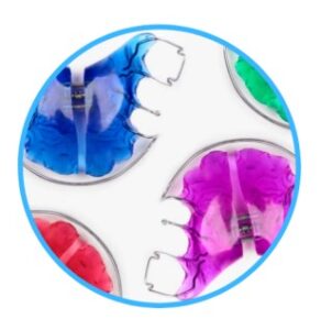 Elastik Ligatür: Yukarıdaki lastik bantlarla karıştırılmaması gereken elastik bağlar, her braketin etrafında dolaşan küçük lastik bantlardır. Ark telini yerinde tutmak için kullanılırlar ve tedavinizi kişiselleştirmek için kendi renklerinizi seçebilirsiniz.